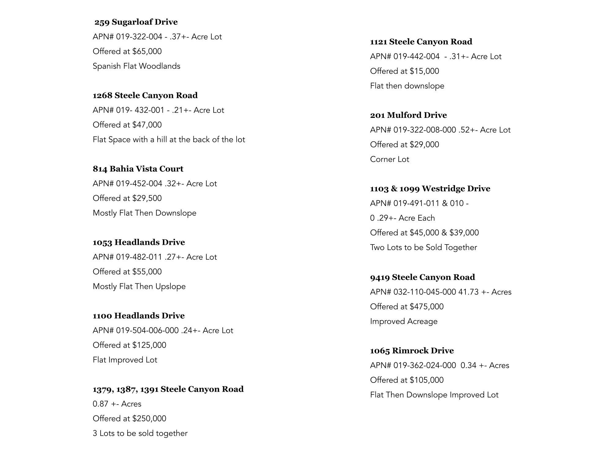 Lots Available